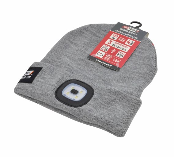 AWTOOLS CZAPKA Z LAMPKĄ LED 80lm SZARA