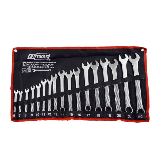 • AWTOOLS KLUCZE PŁASKO-OCZKOWE KOMPLET 17elem. 6,7,8,9,10,11,12,13,14,15,16,17,18,19,20,21,22 mm