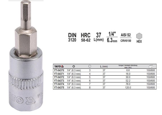 • YATO KLUCZ TRZPIENIOWY IMBUSOWY/HEX 1/4" 8x37mm