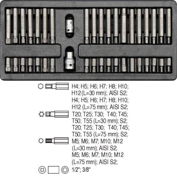 • YATO WKŁADKA DO SZUFLADY ZESTAW KOŃCÓWEK 40 elem. 5538
