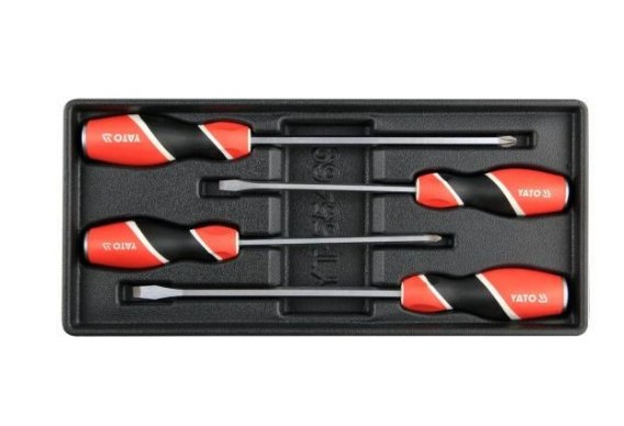 Wkład do szuflady zawierający zestaw 4 wkrętaków do pobijania.